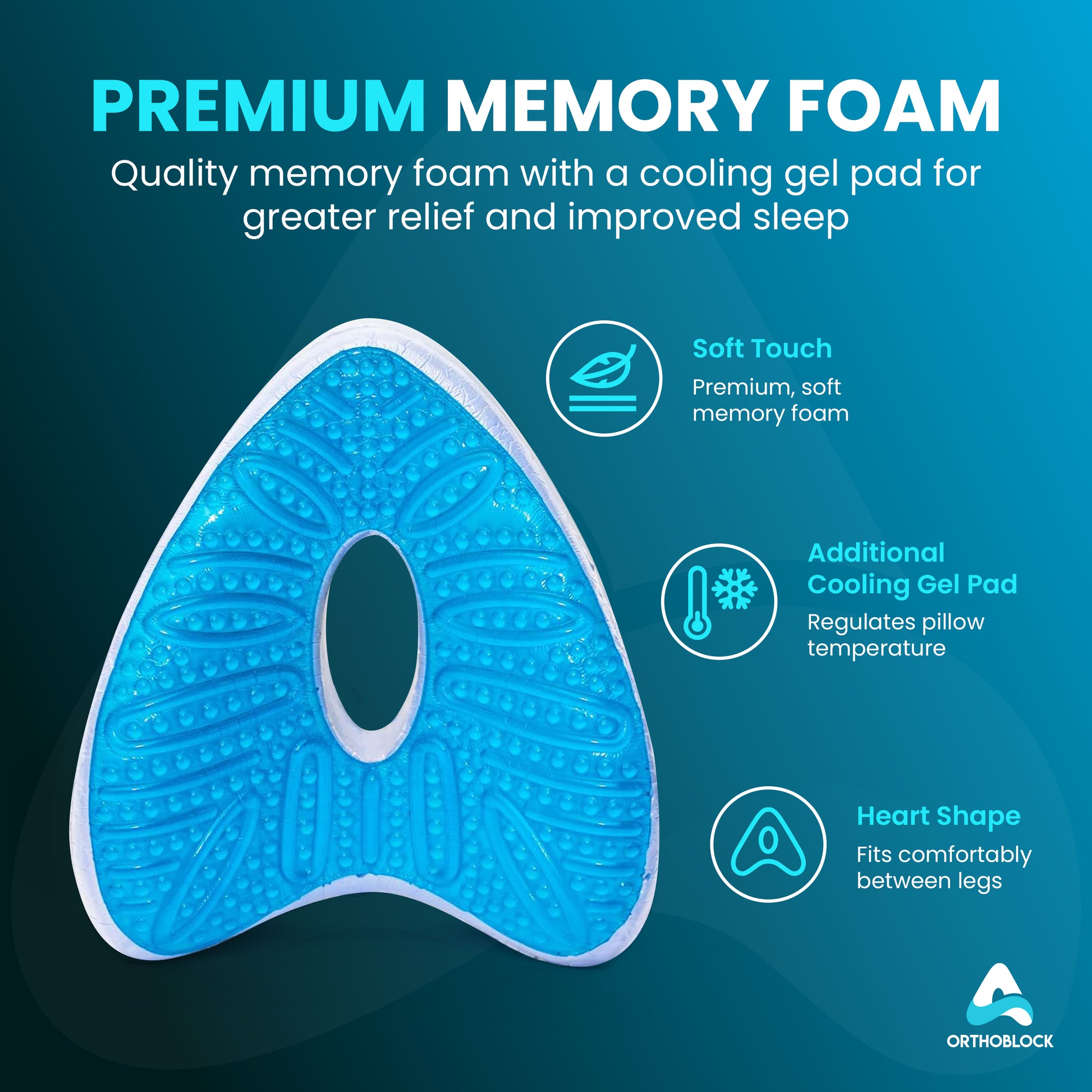 Say goodbye to restless nights and hip, back, or sciatic pain. The OrthoBlock Knee Pillow offers cooling comfort, perfect alignment, and all-night support.